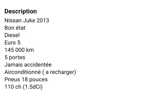 Liste basée sur les informations fournies par le constructeur.
