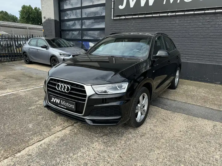 Zeer mooie Audi Q3 1.4 TFSI in S-Line uitvoering met zwart exterieur en zwart lederen interieur.