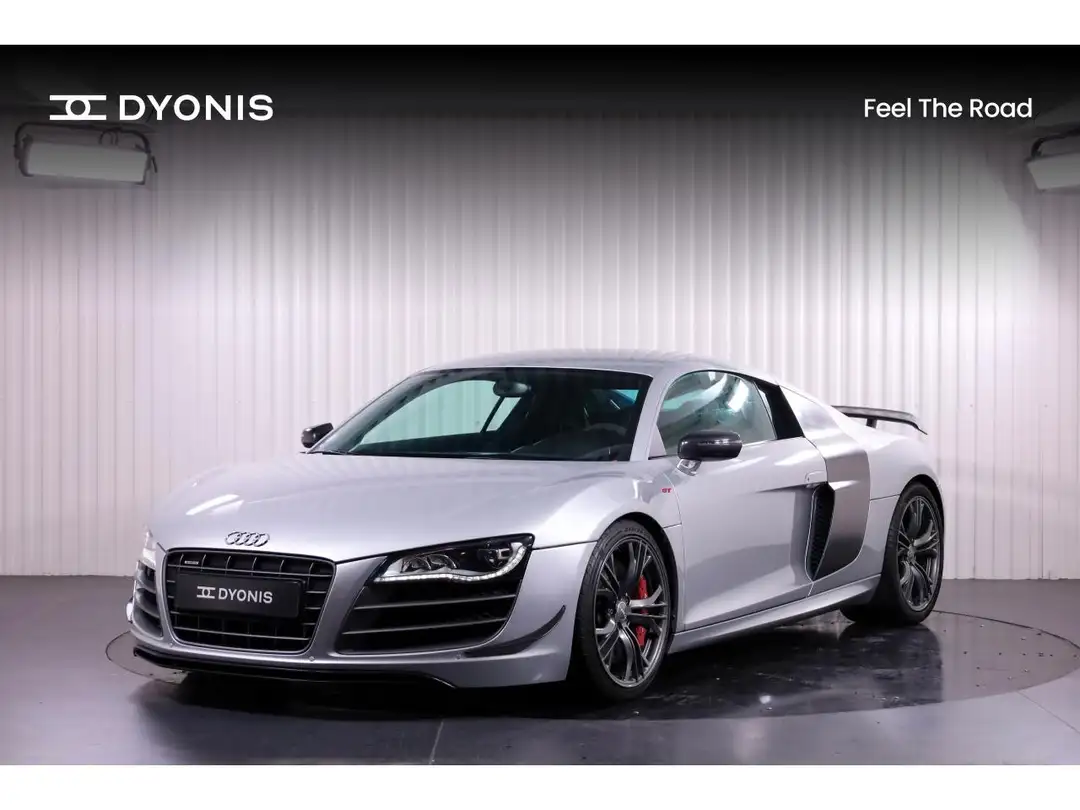 AUDI R8 GT 5.2 V10 - 1 of 333 Plus puissante, plus affûtée, que la R8 V10 5.2, elle conserve néanmoins la polyvalence d'usage qui fait sa force, tout en faisant vibrer le chrono ! Avec 100 kilos de moins, 35 ch de plus, et une parure de guerre, l'Audi R8 GT hausse le ton ! La R8 GT assure par ailleurs l'exclusivité : seulement 333 exemplaires ont été construits, pour le monde entier. Sa livrée gris Suzuka lui donne une allure puissante et masculine à la fois.Vitesse max : 320 km/h0 à 100 km/h : 3.6 sConsommation mixte : 13,7 L/100 kmINFORMATIONS : Véhicule en stock visible au Showroom sur rendez-vous Double des clésCarnet d'entretienContrôle techniqueExemplaires 24 sur 3332 places SUIVI ET ENTRETIEN :01/06/2012 à 15 301 km03/05/2013 à 26 394 km27/10/2014 à 38 637 km23/03/2017 à 49 811 km04/05/2020 à 55 665 km10/07/2023 à 57 198 km03/05/2025 à 58 505 kmPRINCIPALES OPTIONS :Couleur extérieur : grisCouleur intérieur : gris noirSellerie alcantaraCuir étenduFrein céramiqueRéservoir 90LPalettes au volantAide parkingSuspension sportRégulateur de vitesseSièges baquets Sport alcantaraSurpiqures rougeVolant 3 branchesKit téléphone main libre bluetoothArceauHarnaisBoîte automatiqueJantes 19' en Alu forgé en Style Y à 5 branchesEtriers de freins rougeBaguettes de seuil de porte carboneVolant multi fonctions alcantara Extincteur Aileron carboneDiffuseur carboneAilettes carbonePoignées de porte carboneRétroviseurs carboneBaie moteur carboneSERVICES COMPLEMENTAIRES DYONIS :ReprisesFinancementExtension de garantieFrais de mise à la route 490 eurosLivraison dans toute la France sur devisPaiement crypto monnaie acceptéVisite virtuelle possible avec dossier photos completSAS Dyonis Capital Social 150 000 euros N° SIRET : 95264568700023 Ouverture du lundi au samedi de 9h à 18h UNIQUEMENT SUR RDV *Les informations présentées dans cette annonce sont données à titre indicatif et ne sauraient engager la responsabilité du vendeur. Sous réserve d'erreurs, d'omissions ou de modifications. Les options :