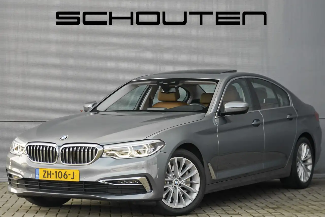 Autobedrijf Schouten biedt u deze gaaf uitgevoerde BMW 5-Serie 530i High Executive Luxury Line aan, origineel in Nederland geleverd. Het exterieur van de BMW 5-Serie is uitgevoerd in de metallic kleur: 'Blue Stone', gecombineerd met een bruin lederen interieur. Verder beschikt de BMW 5-Serie 530i High Executive Luxury Line over een zeer complete fabrieksoptielijst, waaronder: