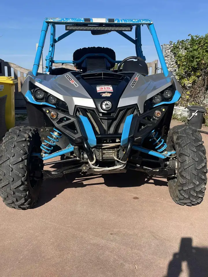 Buggy can am 1000 turbo en très bon état avec beaucoup d’options : toit, grosse suspension, direction assistée, jantes bibloc +réserve 14 pouces + 5 jantes avec pneus pour cailloux, protection spéciale sous le buggy +protection d’origine, protection arrière, harnais can am, filet arrière, porte roue, barre led, en + option portes, 4pneus encore corrects. Entretien fait après chaque sortie chez Can-am.