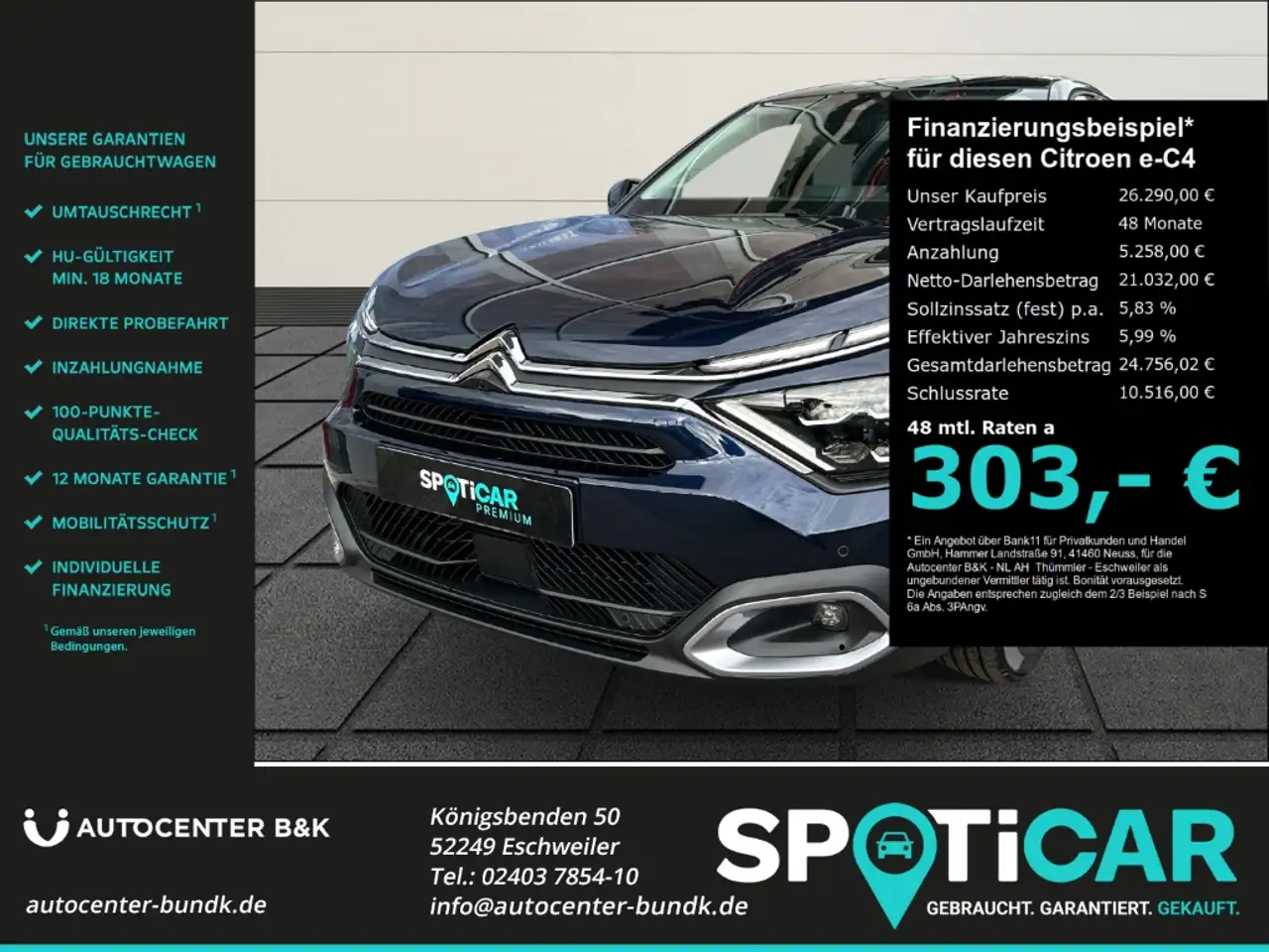 - Citroen E-C4 Electric Max Elektromotor HUD Navi Incl. Wallbox Apple CarP