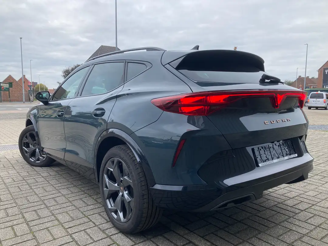 Formentor 150pk benzine DSG Automaat MHEV, Fjord metaalkleur, Electronische airco 3 zones, Sport-Comfortzetels Half Leder/Stof met lendensteunregeling, Lederen multi-functie supersportstuur met schakelpeddels en verwarmbaar, Full link / Apple Carplay / Android auto (Wired en Wireless), Full LED lichten met Grootlichtassistent, LED achterlichten met animatie, Mistlichten vooraan, Electrische + verwarmbare + electrisch inklapbare buitenspiegels, Rijprofielselectie met conv. schokdempers, Zelfdimmende binnenspiegel, Licht- en regensensor, ACC Adaptive Cruise Control, Front assist (noodremassistent), Lane assist (rijstrook assistent), Uitwijkassistent en Afslag assist, Vermoeidheidsherkenning, Verkeerstekenherkenning, Comforttelefonie met inductief opladen, DAB radio, Spraakbediening, Shadow look met zwarte dakreling, Sfeer- en omgevingsverlichting (multicolor), ESP, Sideguard gordijnairbags, Frontale airbags, Zijdelingse airbags voor en achter, Centrale armsteun vooraan, 1/3 -2/3 neerklapbare achterbankleuning met centrale armsteun, Tapijtset, Keyless Open en Keyless Start, ISOFIX voor kinderzitjes, 230v stekker, Variabele kofferlaadvloer, Zwarte dakhemel, Parkeersensoren voor en achter en Achteruitrij Camera, Bandenspanningscontrole, Aluvelgen 'Springfield' in 18', Volumetrisch en perimetrisch alarm met sirene, Verduisterde achterruiten af fabriek, Electrische koffer (virtueel pedaal),