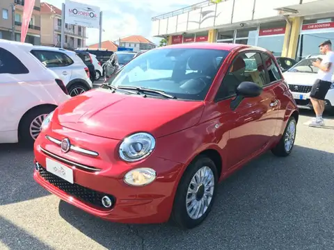 500 Mild Hybrid rossa in allestimento Lounge (cerchi in lega, infotainment touch con CarPlay, cruise control), con in più il pacchetto Comfort (fendinebbia, sensori di parcheggio, sedile posteriore sdoppiato).