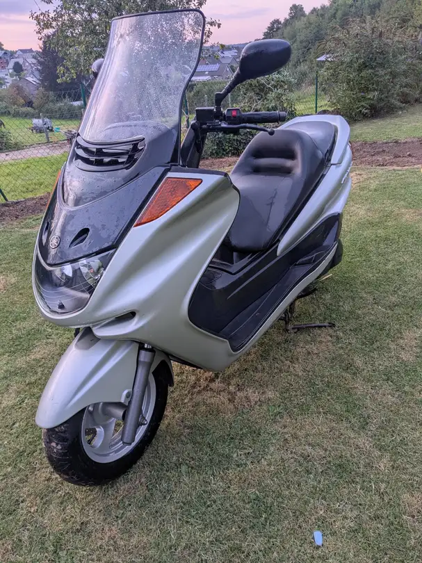 Yamaha Majesty 250 de 2000, réglage carbu + entretien a faire. Abîmée des 2 côtés car chute a l'arrêt.