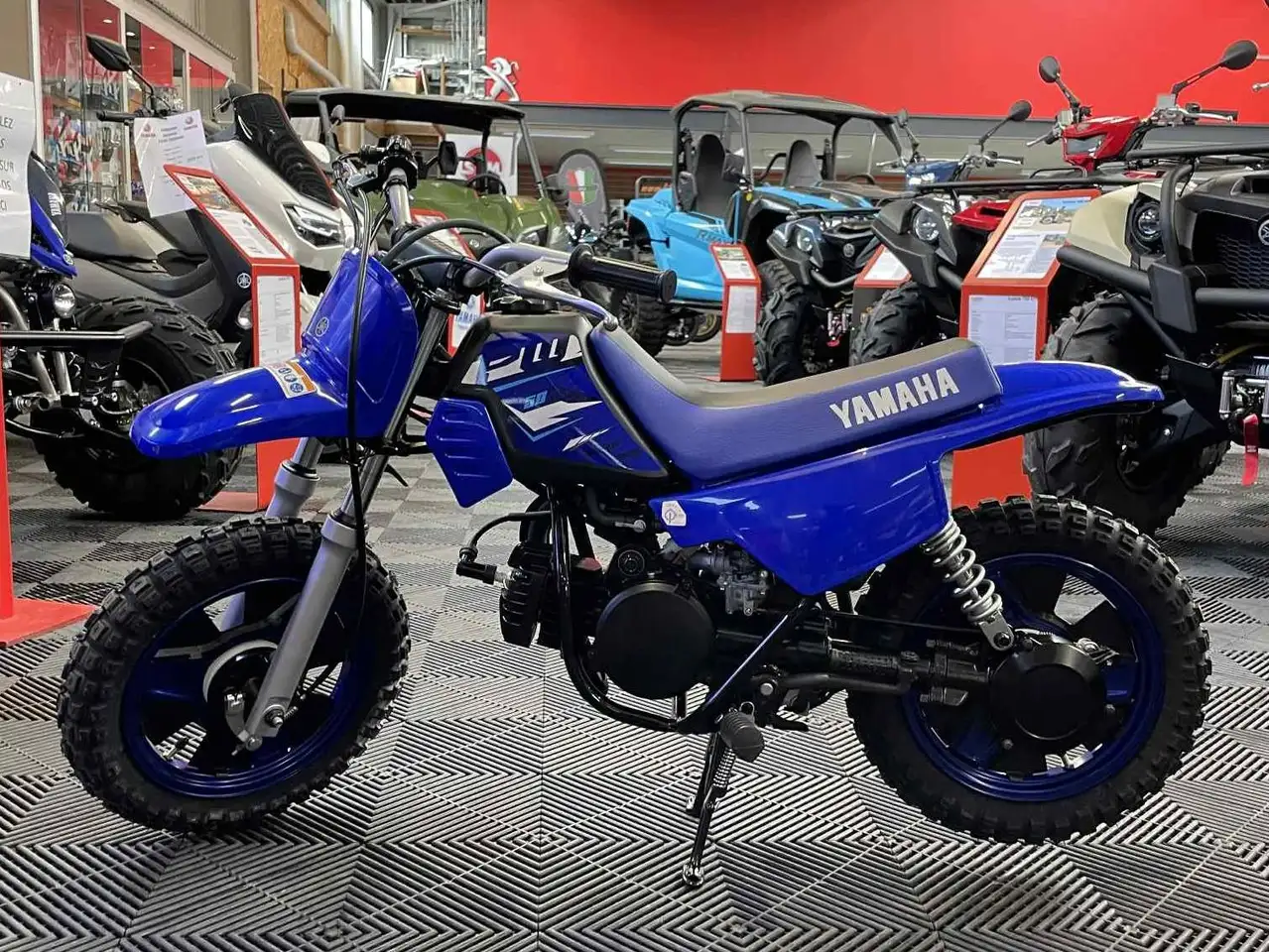 Mini-moto Yamaha PW50 neuve, idéale pour les débutants et les jeunes pilotes.