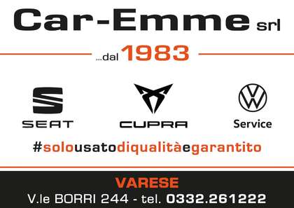 Car-Emme srl è un'azienda giovane e dinamica ma con oltre 40 anni di esperienza all'interno della grande famiglia Volkswagen. La storica sede di Varese di Viale Borri 244, aperta nel 1983, è giunta ad occupare una superficie di 5.700 mq per garantire la massima assistenza sia in ambito Service che per acquistare in tutta serenità la tua automobile, sia essa nuova, usata, aziendale o KM0. Un service impeccabile, di conseguenza la fiducia e la stima della Clientela, qualità guadagnate negli anni con la serietà come obiettivo principale, hanno stimolato Car-Emme srl ad affrontare la prova più dura: la CERTIFICAZIONE ISO 9001:2000 rilasciata dall'autorevole TUV Management Service Monaco. Car-Emme srl è oggi Service Partner per i marchi SEAT, CUPRA e Volkswagen, qui puoi inoltre trovare la vettura che cerchi alle migliori condizioni di mercato. Il nostro team è a vostra disposizione per qualunque informazione e necessità, dalle 8:30 alle 12:00 e dalle 14:00 alle 19:00. Da Car-Emme l'attenzione alle esigenze del Cliente è tutto (e la parola Cliente ha la "C" maiuscola...dal 1983!).