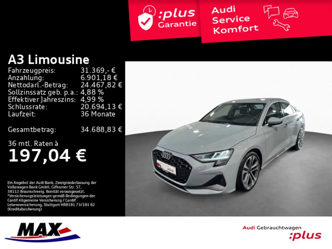 - Anbieterbank: Audi Bank - Zweigniederlassung der Volkswagen Bank GmbH / Gifhorner Str. 57 / 38112 Braunschweig