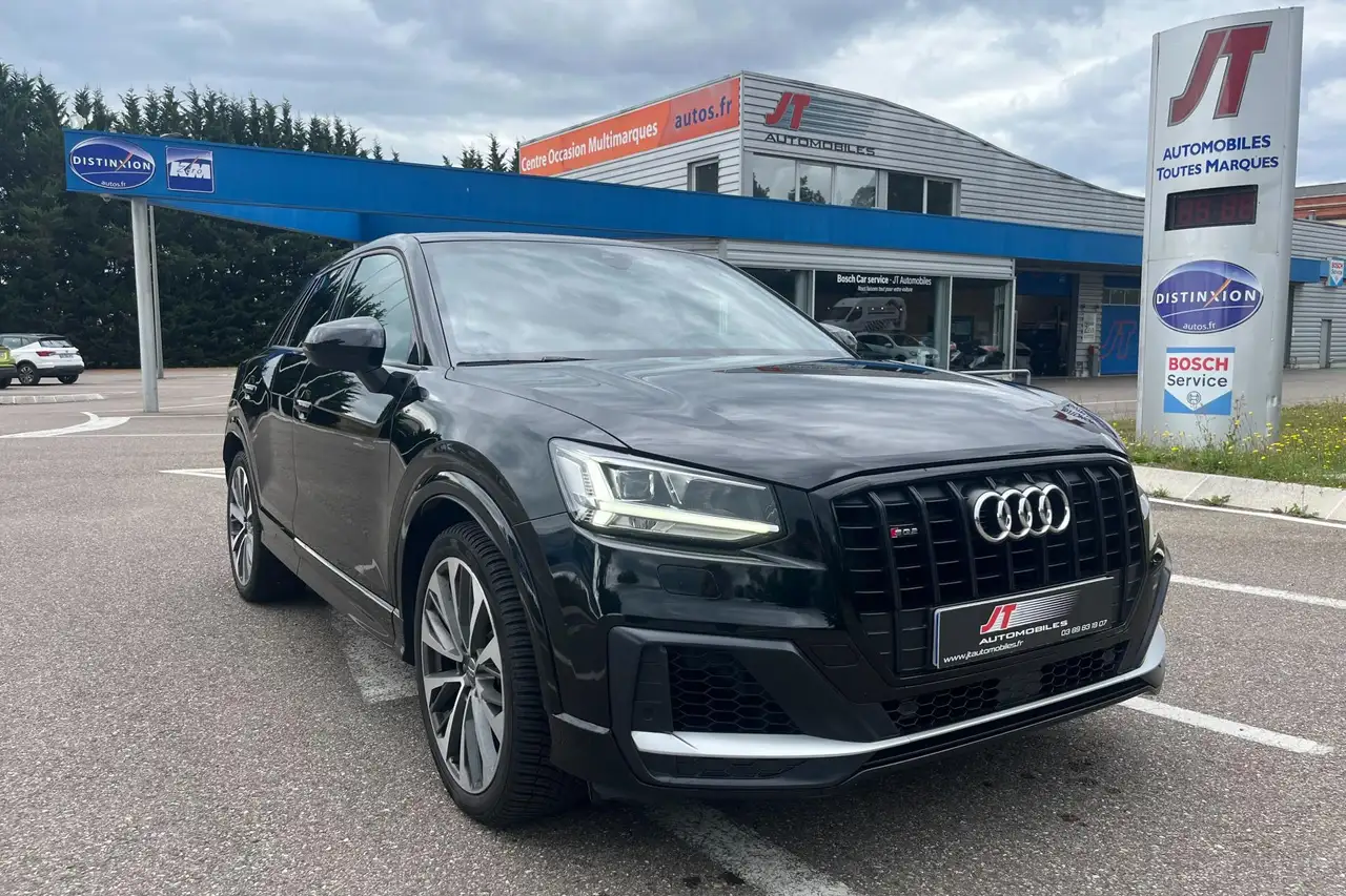 Les options : Audi Parking System plus avec affichage sélectif, Bang & Olufsen Premium Sound, Caméra de recul, Dispositif d'attelage amovible manuellement, Hayon électrique, Pack Extérieur SQ2, Pack Intérieur SQ2, Sièges avant chauffants, Toit ouvrant coulissant/relevable électriquement en verre de sécurité simple vitrage teinté et pare-soleil manuel, incluant coupe-vent intégré et fermeture/ouverture confort depuis l'extérieur par la clé du véhicule, Vitres surteintées (Privacy glass) : Lunette arrière, vitres de portières arrière et vitres latérales arrière surteintées, Accoudoir central avant, Affichage du contrôle de la pression des pneumatiques, Airbags grand volume pour le conducteur et le passager, Airbags latéraux à l'avant et système d'airbags de tête, Alarme antivol, Antipatinage ASR pour une motricité optimale, empêche le patinage des roues motrices, Application lumineuse graphique, Appuie-tête à l'avant, réglables en hauteur, Assistant de feux de route, Audi Drive Select, Audi Hold Assist, Audi Parking System, Audi Parking System : système acoustique d'aide au stationnement arrière, Audi pre sense front avec détection des piétons, Audi smartphone interface, Audi Sound System, Audi virtual cockpit, Blade couleur carrosserie, Blocage électronique de différentiel (EDS), Boîte de vitesses S tronic séquentielle à 7 rapports à double embrayage avec commande électrohydraulique, Boîtiers de rétroviseurs extérieurs style aluminium, Capot de coffre à ouverture automatique, en déverrouillant le coffre avec la télécommande, la touche sur la portière ou en actionnant la touche douce de déverrouillage au niveau du coffre, le capot de coffre bascule automatiquement, Ceinture de sécurité réglable en hauteur, Ceintures de sécurité 3 points automatiques pour toutes les places, Ceintures de sécurité assorties à la couleur des garnitures, Châssis sport S, Ciel de pavillon en tissu noir, Clé à fréquence radio avec safelock, Climatisation automatique, Colonne de direction de sécurité, Contrôle de port de ceinture sur siège conducteur et passager AV, Contrôle électronique de stabilité (ESC), Désactivation de l'airbag du passager avant, Détecteur de pluie et allumage automatique des projecteurs, Direction assistée électromécanique, Direction progressive, Dispositif anti-erreur de carburant, Dossier de banquette arrière rabattable en deux parties , 1/3, 2/3 ou complétement, Eclairage intérieur, à temporisation avec contacteurs sur toutes les portières ; éclairage du coffre, Ecrous antivol, Fixation pour sièges enfants ISOFIX et Top Tether pour les places arrière extérieures, Frein de stationnement electromécanique, Freins à disque à l'avant et à l'arrière, Identification du modèle/technologie sur le capot de coffre, Inscription SQ2 sur la calandre, Inscriptions S line sur les ailes avant, Interface Bluetooth, Jantes 18'' en aluminium coulé 5 branches en V (S-Design), 8J x 18 avec pneus 235/45 R18, MMI navigation plus avec MMI touch, Moulures de seuils avec insert en aluminium et emblème S, éclairées, Pack aluminium intérieur, Pack Eclairage d'ambiance, Pare-brise avec isolation acoustique, Pare-soleil, Pédalier et repose-pied en acier inoxydable, Peinture intégrale, Peinture vernie Blanc ibis, Phares à LED avec clignotants arrière à LED dynamiques, Pommeau du levier/sélecteur de vitesses en cuir perforé noir, Protection antidémarrage électronique, intégrée à la gestion du moteur, activation automatique par la clé du véhicule, Réception radio numérique (DAB), Récupération d'énergie, générée lors des phases de freinage ou de décélération permettant une économie de carburant, Régulateur de vitesse, Repose-genoux et diffuseurs d'air laqués, Rétroviseur intérieur électrochrome, Rétroviseurs extérieurs avec clignotants à LED intégrés, Rétroviseurs extérieurs réglables, dégivrants et rabattables électriquement, incluant fonction rabat automatique pour le rétroviseur côté passager avant, Sécurité enfants, Sellerie en cuir / Alcantara embossée S line sur le dossier des sièges avant, Set de réparation pour pneus avec compresseur 12 volts et produit de colmatage pour les pneus, vitesse maximale 80 km/h, Sièges avant réglables manuellement en hauteur et en profondeur, Sièges avant sport, Sortie(s) d'échappement chromée, Surpiqûres contrastées sur les selleries, volant Sport en cuir, soufflet de levier/sélecteur de vitesses ainsi que tapis complémentaires, Système Start/Stop désactivable, Tapis complémentaires à l'avant et à l'arrière, Tapis de coffre, Transmission intégrale permanente quattro, Triangle de pré-signalisation, Trousse de secours, Vide-poches, Vitres électriques avant et arrière, Vitres latérales et arrière athermique, Volant 3 branches multifonction en cuir avec méplat avec palettes de changement de vitesse, Volant réglable manuellement en hauteur et en profondeur
