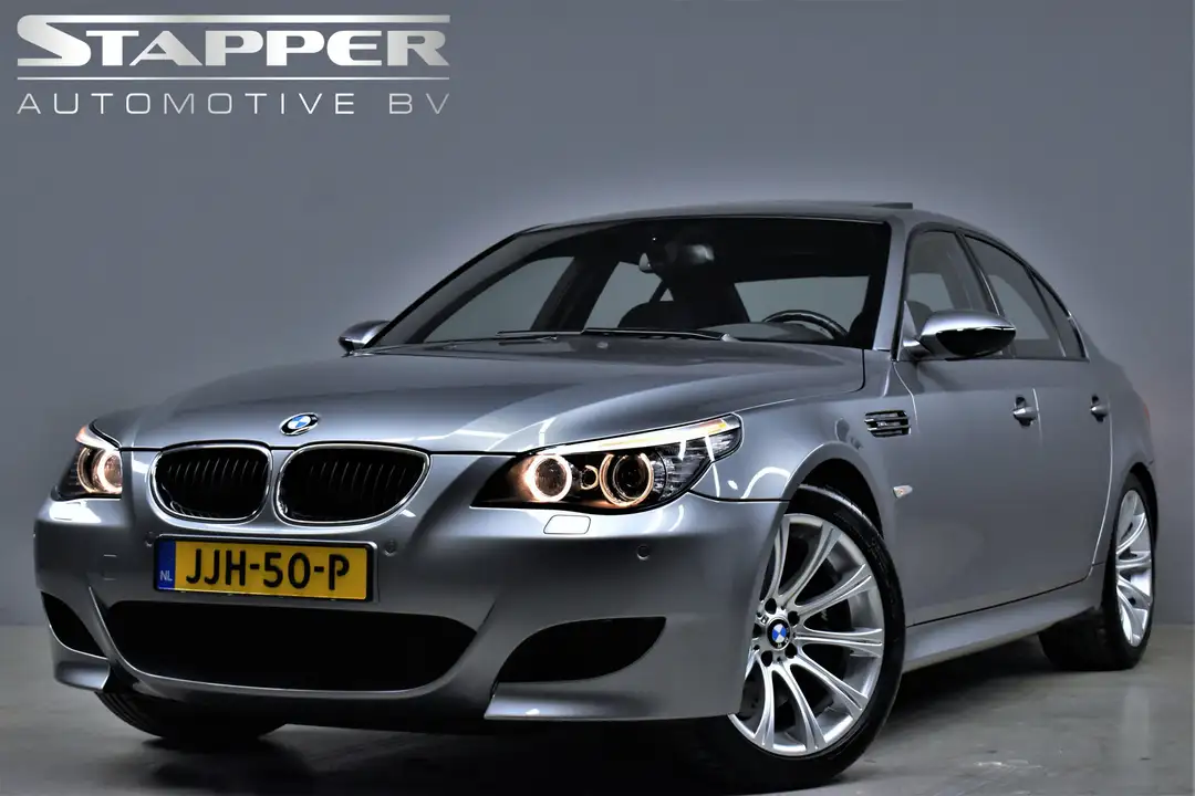 Deze prachtige BMW M5 E60 met zijn legendarische 5.0 V10 motor is echt de grootste parel in onze showroom en een waar collectorsitem (óf investeringsobject, want hij zal zeker niet minder waard worden). Onze M5 verkeert van top tot teen en zowel technisch als cosmetisch werkelijk in ongelofelijke staat, daarnaast staat hij nog volledig in zijn eerste lak (op de bumpers na). De auto is altijd volledig Dealer Onderhouden geweest, is bij binnenkomst technisch gecontroleerd door de BMW Specialist en staat helemaal rijklaar in onze showroom. Bij 71.748 km is de auto preventief voorzien van: nieuwe lagerschalen (drijfstanglagers), nieuwe vanos-hogedrukleidingen en solenoids en het gaskleppenhuis is volledig gereviseerd met nieuwe metalen gasklepactuatoren. Dit zijn de cruciale punten die van belang zijn bij dit type motor. Tevens valt deze auto binnen de Youngtimer regeling, wat hem fiscaal ook nog eens zeer aantrekkelijk maakt. De prijs is inclusief garantie en afleveren, er komt dus niets bij en u kunt ‘m direct meenemen. Kortom: u zult alles behalve teleurgesteld worden en komt niet voor niets!