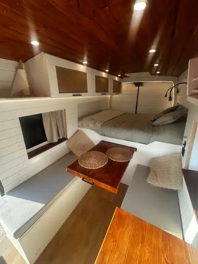 Aménagement artisanal haut de gamme (2024), pensé pour la longévité, l’autonomie totale et le confort.