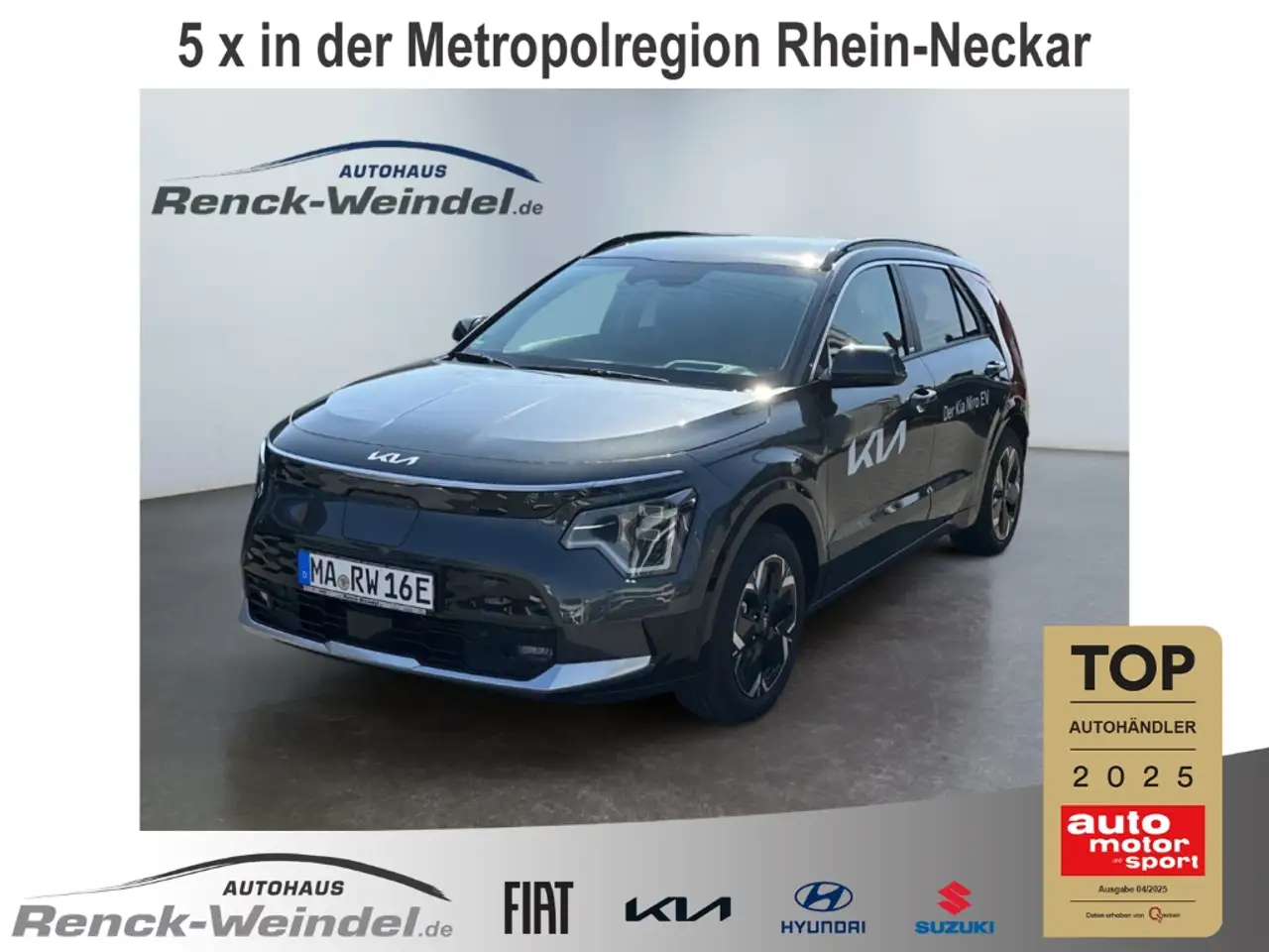 - Weiteres: Standort: 68199 Mannheim-Neckarau, Antriebsart: Frontantrieb, Audio-Navigationssystem KIA (10,25), Audiobedienung am Lenkrad, Bi-LED-Scheinwerfer, DAB-Tuner (Radioempfang digital), Elektromotor 150 kW (cont. 50 kW), Getriebe für Elektrofahrzeug, HV-Batterie 64 kWh, Kombiinstrument digital mit Panorama-Display, LM-Felgen, Sitzheizung vorn, Smartphone Schnittstelle (Apple CarPlay & Android Auto), Verglasung hinten abgedunkelt (Privacy Glass), Wärmepumpe für Heizungs-/Klimaanlage, Anti-Blockier-System (ABS), Elektron. Stabilitäts-Programm (ESP / ESC), Freisprecheinrichtung (Bluetooth) mit Sprachsteuerung, Karosserie: 5-türig, Autobahnassistent II (Highway Driving Assist, HDA II), Autonome Notbremsfunktion inkl. Abbiegefunktion (FCA-JT), Frontkollisionswarnung mit Fußgänger- und Fahrraderkennung (Forward Collision-Avoidance Assist), Induktionsladeschale für Smartphone, Ladevorrichtung On-Board-Lader (3-Phasen), Müdigkeitserkennungs-Sensor (Driver Attention Warning, DAW), Querverkehrs-Assistent (Rear Cross Traffic Alert, RCTA), Radstand 2720 mm, Sicherheitssystem mit automatischem Notruf (ERA GLONASS / eCall), Spurfolgeassistent (Lane Following Assist, LFA), Verkehrszeichenerkennung, erweitert (Geschwindigkeits-Regel-/Begrenzeranlage)