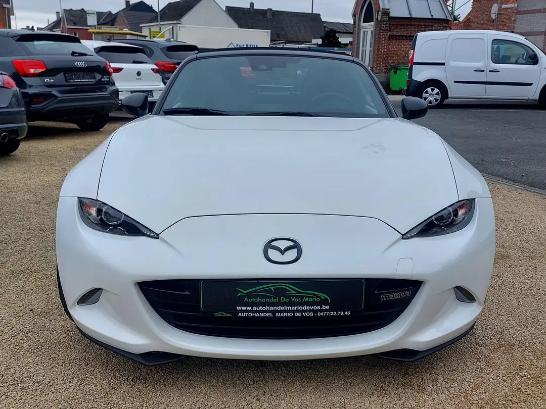 Deze Mazda MX-5 heeft een zeer volledige uitrusting: Arctic white metaalkleur, 17' lichtmetalen 'Konig' velgen, Maxton uitlaat, Eibach verlaagde veren, Sportzetels in zwart leder met contrasterend stiksel, Zetelverwarming, Multifunctioneel lederen stuur, Navigatie, Bluetooth, Media-aansluitingen, Cruise control met snelheidsbegrenzer, Dodehoekdetectie, Elektrisch verstelbare spiegels, Privacy Glass, DAB radio, Led lichten, regen- en lichtsensor, Parkeersensoren achter MET camera, Lane departure warning, en tal van andere....