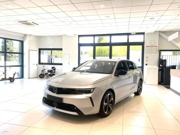 Opel Astra 1.2 Turbo 130ch Élégance, gris métallisé, 9 417 km, 7 CV fiscaux. Berline essence moderne avec écran tactile, caméra de recul, régulateur de vitesse, climatisation automatique, Bluetooth.