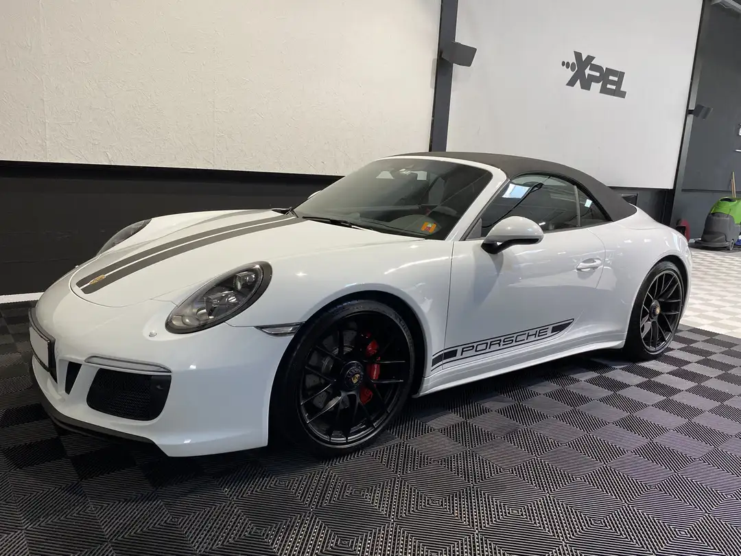 Porsche 911 Carrera 4 GTS Cabriolet type 991.2 avec protection PPF (XPEL) complète sauf capot arrière et partiellement sur le pare-choc arrière.