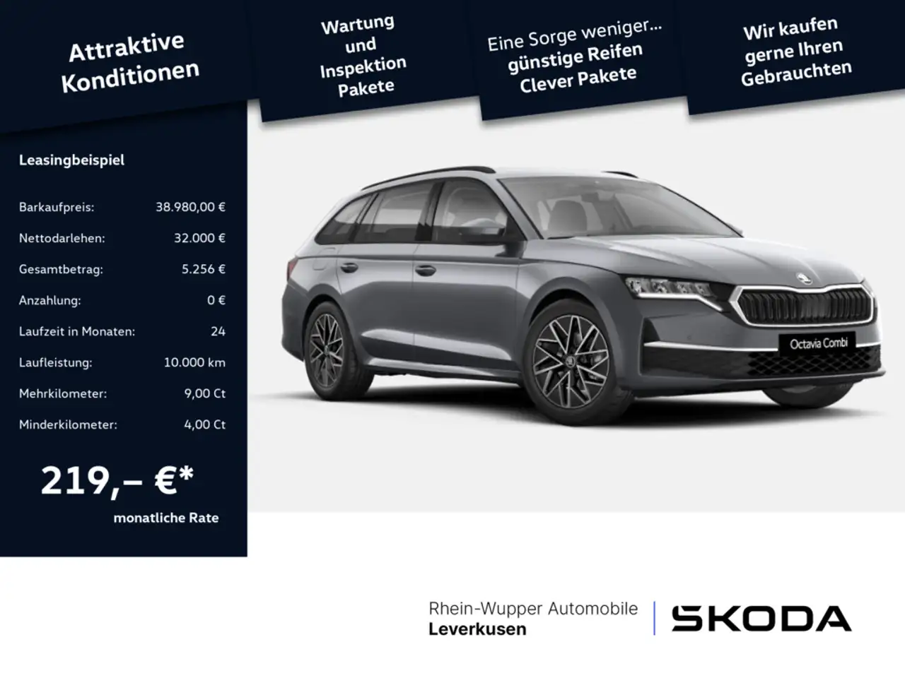 - (inkl. 19% MwSt.), Einmalige Leasingsonderzahlung: 0,00 EUR, Laufzeit: 24 Monate, Laufleistung p.a.: 10.000 km, 24 monatliche Leasingraten à: 219,00 EUR* (inkl. 19% MwSt.)