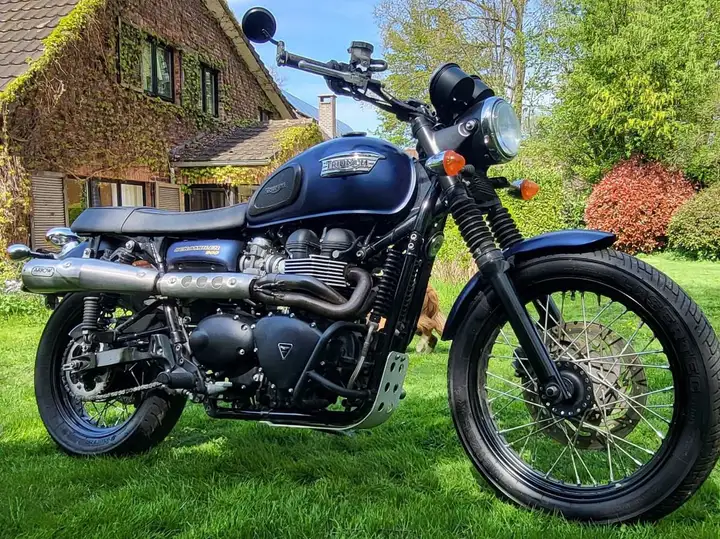 Triumph scrambler en parfait état! Pratiquement pas roulé..je m'en sépare car plus l'utilité! Il est équipé de suspensions öhlins et d'une sortie de pot arrow! Les pneus sont neuf. Pot et suspension d'origine fourni avec!