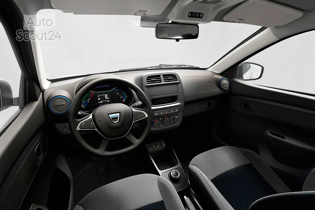 Binnenin de Spring is het vrij snel duidelijk dat Renault/ Dacia een zo goedkoop mogelijk auto in de markt wilden zetten. Harde plastics dicteren de sfeer en er is weinig plaats voor franjes. Daartegenover staat wel dat de Spring genoeg plaats kan bieden aan vier volwassenen én uit kan pakken met een meer dan acceptabele koffer.