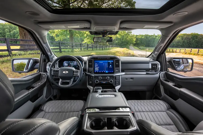 In de VS zijn er 3 koetswerkvarianten (Regular, Super Cab en SuperCrew) en maar liefst 10 uitrustingsniveaus om uit te kiezen, maar de F-150’s die naar ons land komen zijn meestal de goed uitgeruste Lariat, Platinum of Limited, naast de Raptor die iedereen wil hebben. Zelfs de minst uitgeruste versie, de Lariat, heeft al een 12-duims Sync 4-infotainmentsysteem, verwarmde en geventileerde elektrisch instelbare zetels met memoryfunctie, een achteruitrijcamera, dodehoekmonitor en meer.