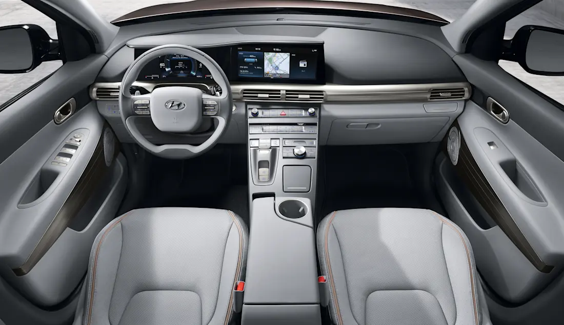 Aan boord trok Hyundai duidelijk de technologiekaart bij het ontwerpen van de Nexo, want de waterstofauto debuteerde heel wat snufjes en rijhulpmiddelen die pas later naar de rest van het gamma kwamen. Denk maar aan een achteruitrijcamera, dodehoekcamera’s die hun beeld weergeven bij het wisselen van rijstrook. Het comfort aan boord wordt verzekerd door de comfortabele voorzetels en de uitgebreide standaarduitrusting, en ook de beenruimte achterin is uitstekend. De knoppenzee op de middenconsole vraagt wel enige gewenning, vooral omdat ze niet zo goed af te lezen zijn.