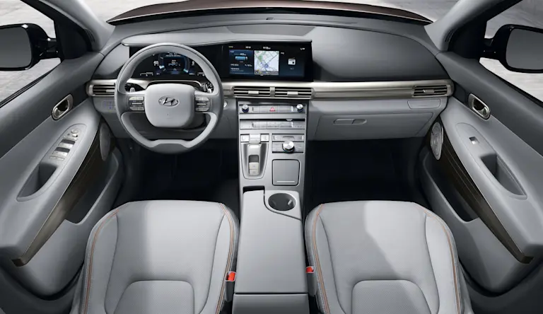 De Hyundai Nexo wordt in ons land maar in één uitvoering geleverd, die meteen ook alle opties omvat om zijn relatief hoge basisprijs te compenseren. Zo krijg je direct LED-lichten, 19-duims lichtmetalen velgen, een panoramisch open dak, elektrisch inklapbare buitenspiegels, een verwarmd stuurwiel, verwarmde en geventileerde elektrische zetels vooraan, verwarmde zetels achteraan, een 12,3-duims infotainmentsysteem met Android Auto en Apple CarPlay, een Krell-audiosysteem met 8 luidpsrekers, een 360°-camera, adaptive cruise control, noodremhulp, dodehoekmonitor, rijstrookassistent en een elektrische kofferklep.