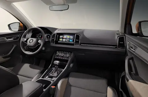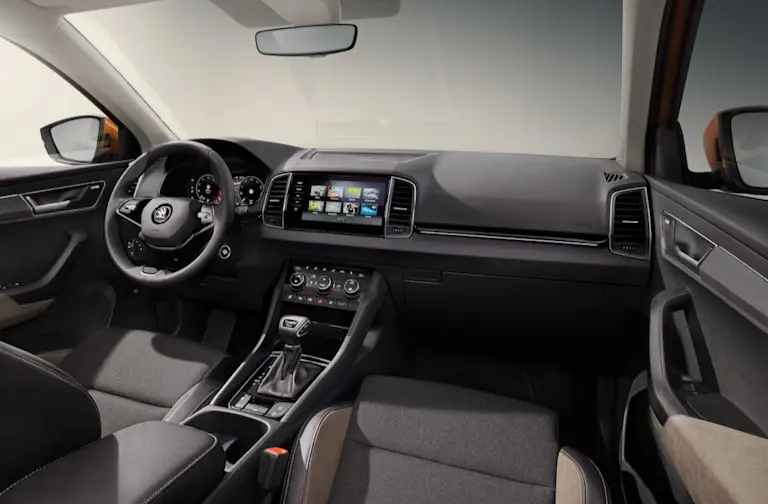 De Karoq neemt Skoda’s SUV-designtaal over die werd geïntroduceerd door de Kodiaq. Met stoere en vlakke koetswerkpanelen en een zelfzekere blik. De Karoq straalt kwaliteit uit. Het interieur is zakelijk afgewerkt en geniet van comfortabel veel ruimte.